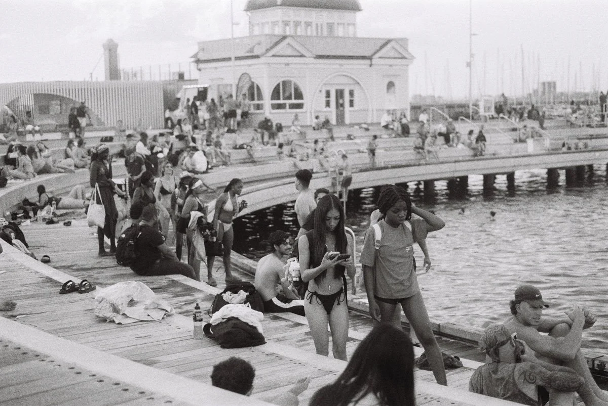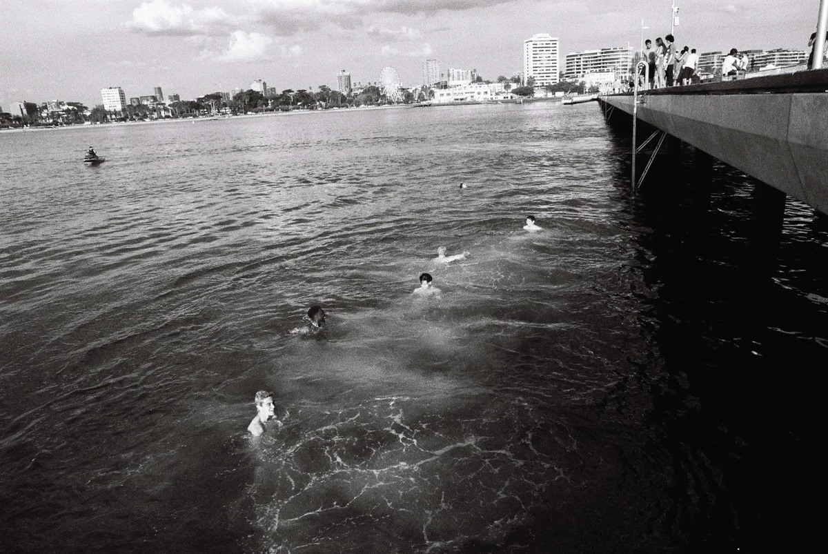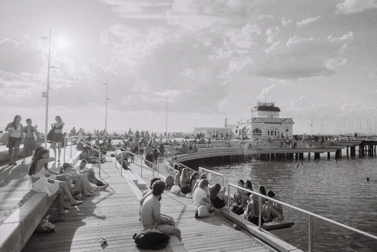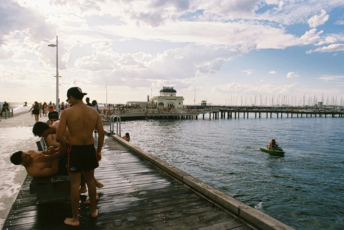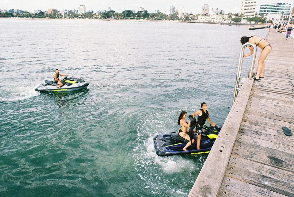 St Kilda Pier. Saturday morning, back in December last year. It’s summer and it’s loud. Jet skis slicing the water, spinning and spinning just to spin, burning petrol. You smell it before you see it.